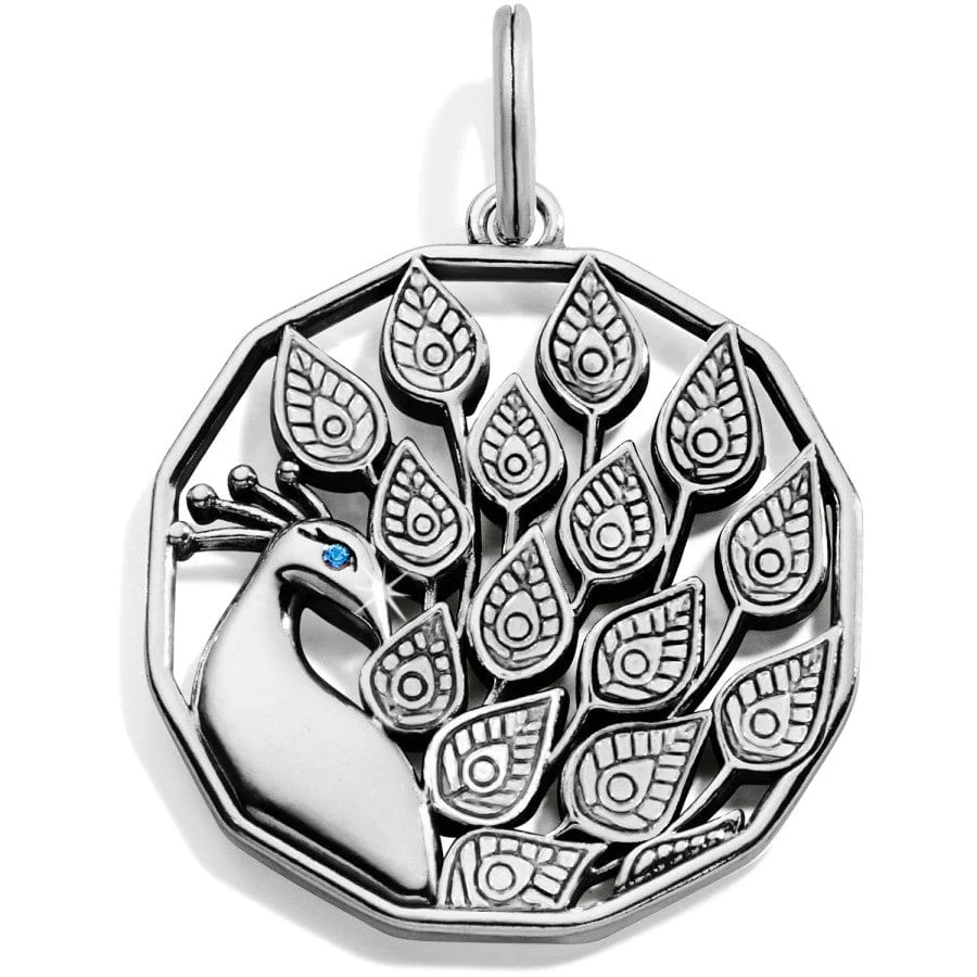 Accented with handset fine quality crystals, this peacock amulet symbolizes both beauty and grace.